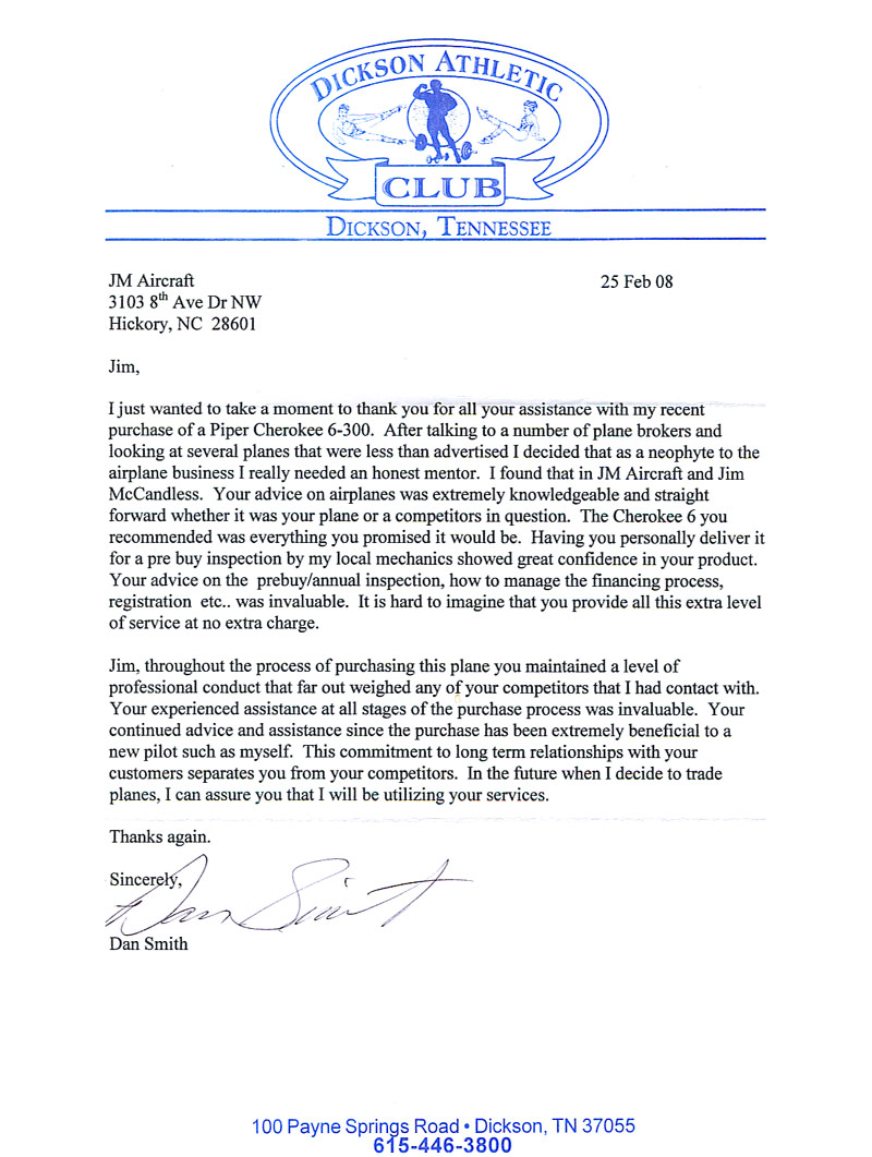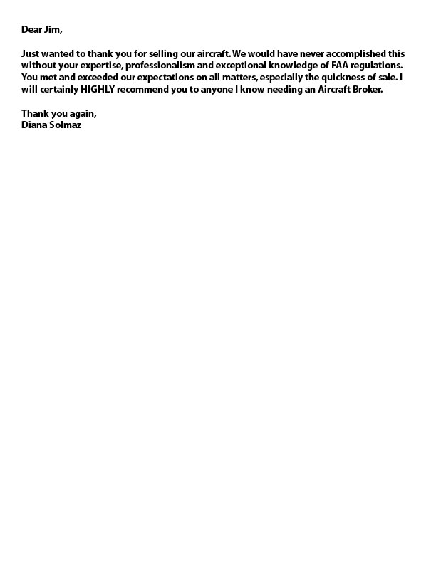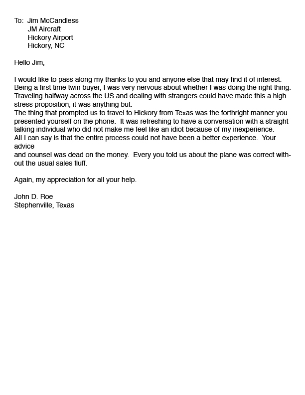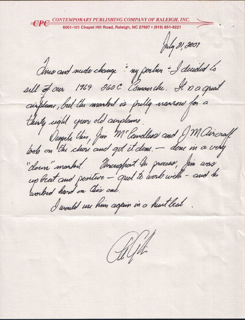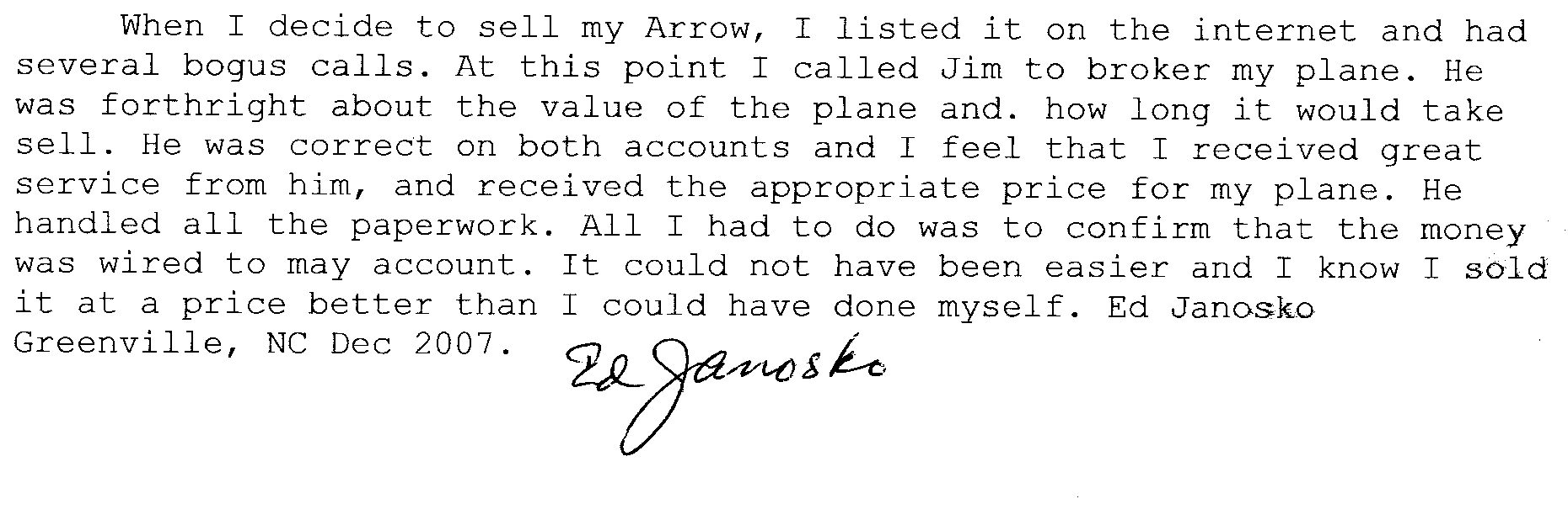 Testimonial from client whom we sold a 1969 260c Comanche for.